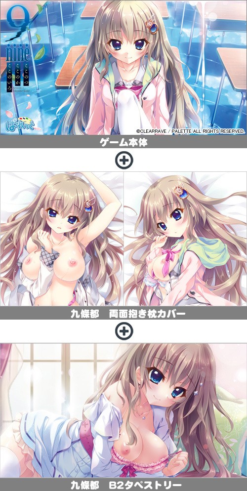 | 名称 : 9-nine-ここのつここのかここのいろ+九條都抱き枕カバー+B2タペストリーセット | |